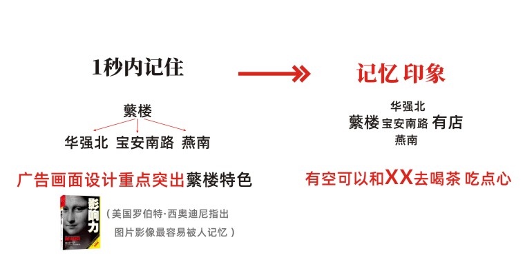 記住“蘩”字即可。我們發現只要能記住“蘩”字,同時加上連續時間段的傳播,蘩樓這個品牌就開始會形成較強的品牌記憶。