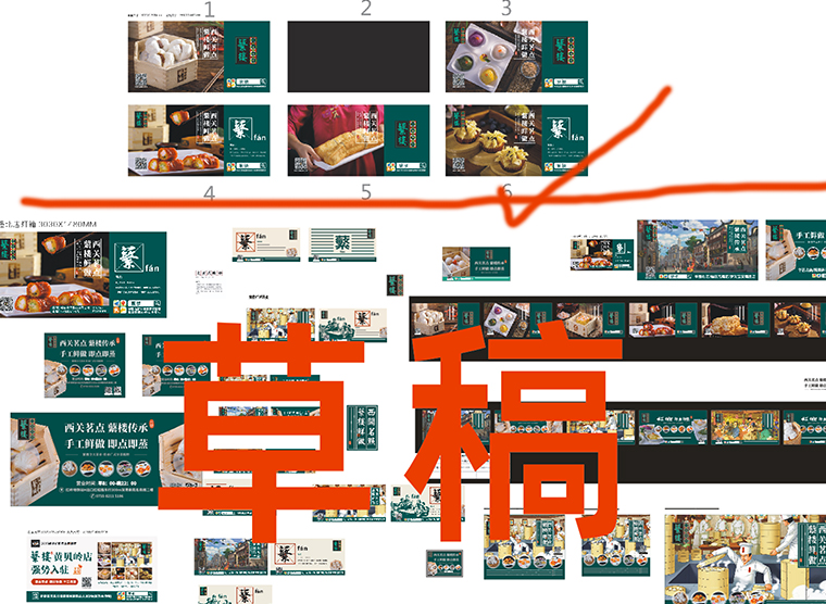 (我們也討論過多個品牌畫面方案如:用蘩樓百年的畫面及鮮做的手繪畫面來做為主題方案,但經過分析:看到這種畫面會讓顧客不知道蘩樓是做產品什么的,如果把產品放小,信息又太多;而只放品牌畫面就會認為:蘩樓就是個西關的什么樓,干什么的不知道,或者根本不感興趣,這樣會形成品牌誤解,不利于初級品牌的傳播。)