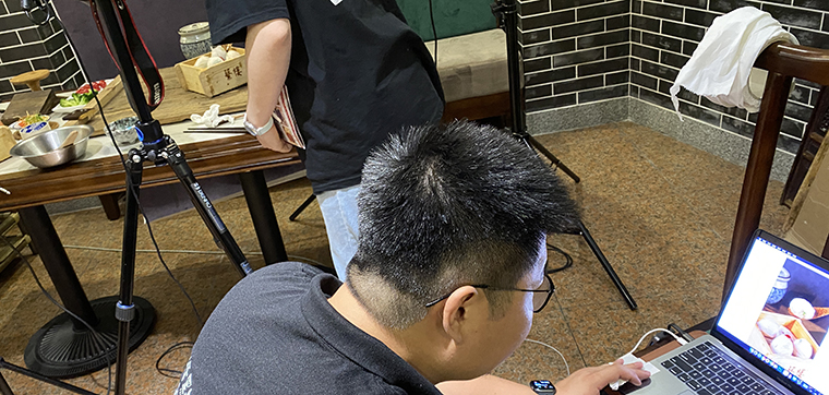 為達到理想拍攝效果,品深設計師再次來到蘩樓與廚師交流,了解這十款產品的特色,用料,制作工藝等細節,同時也購買有關廣式點心制作相關書籍進行對比學習,獲得很多新發現,如:判斷手工炸油條好壞,必須要展示其“