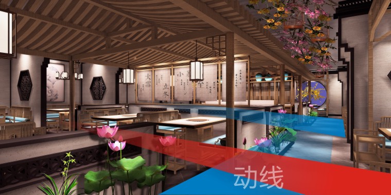 動(dòng)線:是建筑與室內(nèi)設(shè)計(jì)的用語之一,把人在室內(nèi)外移動(dòng)的點(diǎn)連起來,就稱之為動(dòng)線。餐廳動(dòng)線是指顧客、服務(wù)員、食品與器皿在餐廳內(nèi)流動(dòng)的方向和路線。如:后廚動(dòng)線,必須以高效、安全為原則,既要考慮各個(gè)功能點(diǎn)設(shè)置是否合理,同時(shí)也要讓廚師操作最短,避免交叉,目的是更快捷出餐,方便顧客用餐,提升翻臺率。好的餐廳動(dòng)線設(shè)計(jì)可以增加員工工作效率,提升上菜速度,給顧客良好的用餐體驗(yàn)。
