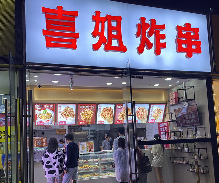 從新晉“流量王”喜姐炸串分析餐飲品牌取名和餐飲空間門頭設計的技巧!