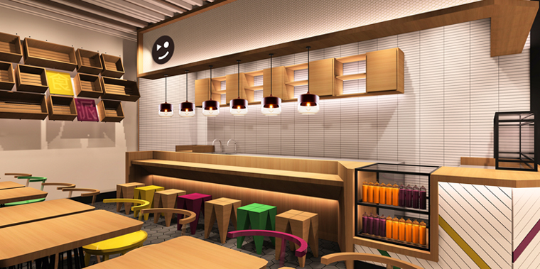 在終端門店空間形象設(shè)計(jì)上,設(shè)計(jì)師可以打造一個(gè)時(shí)尚,出挑,好玩的空間體驗(yàn)。30-60平米的門店,以大面積整體白色為主,簡(jiǎn)潔時(shí)尚,小而精,小而美,塑造有品牌特色,有文化有追求的連鎖餐飲空間形象。