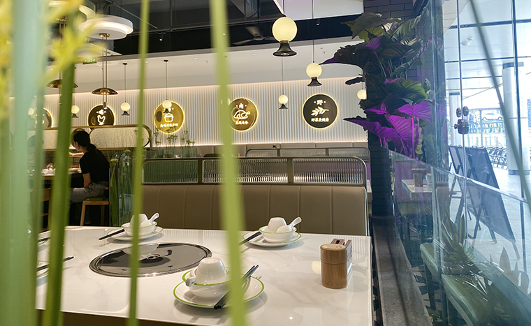 2、用裝飾材料特性表現豬肚雞菜品的核心特征,打造出時尚清新,通透舒適的空間感受。