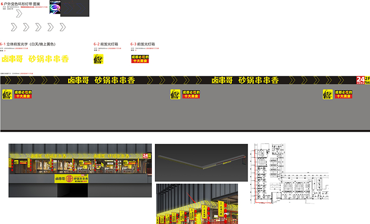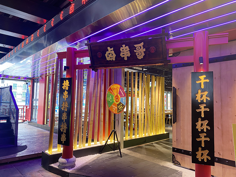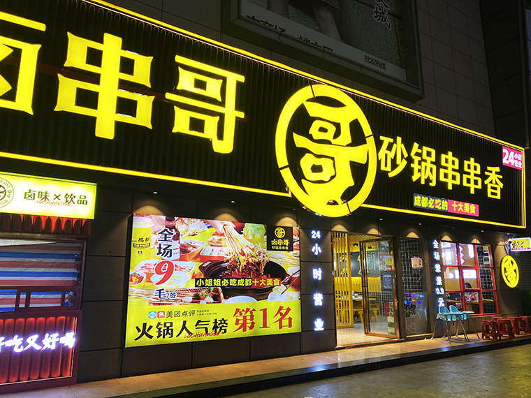 5、在鹵串哥的門店中,廣告裝飾成了門店最鮮明的一個(gè)風(fēng)格。各種軟膜燈箱畫面、軟膜燈箱文案、發(fā)光字、立體字等,手繪墻,加起來100多項(xiàng)廣告制作,很好地增添了門店的熱鬧氛圍,傳達(dá)了品牌信息,形成了鹵串哥獨(dú)有的品牌體系,讓其他競(jìng)爭(zhēng)者無法模仿。