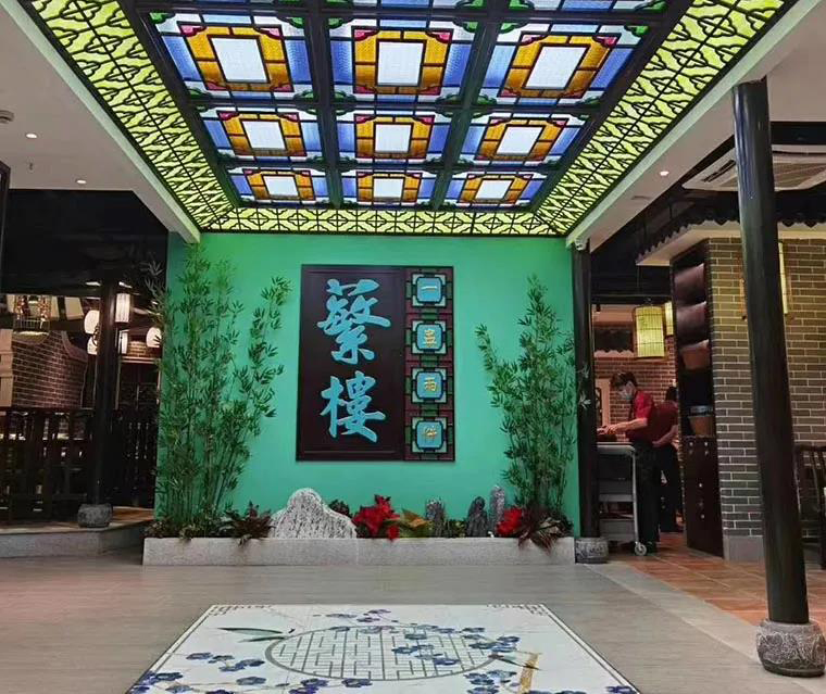 在空間裝飾上,堅持將傳統(tǒng)嶺南建筑常用的鑊耳山墻、滿洲窗、廣州老建筑的趟門,具有鮮明地域特色的西關(guān)大屋,廣府人最熟悉的雞公欖,在空間中靈活使用,達(dá)到了一種步移景異,一步一景的空間效果。