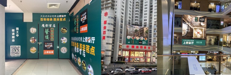 在商場外部廣告宣傳方面,品深餐飲設(shè)計在商場一樓大廳的羅馬柱、商場正面戶外大廣告畫面。重點突出品牌名稱、產(chǎn)品特色,讓周邊街坊、地鐵進(jìn)出站乘客抬眼就能看到我們;商場