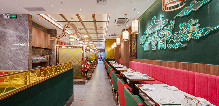 空間設計亮點:以品牌文化為驅(qū)動,通過品牌形象設計及主色調(diào)將品牌名及得閑飲茶的文化直觀傳達出來,再通過空間立體化中各種廣州飲茶生活的元素、場景,產(chǎn)品的核心特點表達出來。形成了從虛的文化到實的場景,將難于描述清晰的品牌內(nèi)涵處處展現(xiàn)在空間裝飾,品牌物料,廣告宣傳中,以一種潤物細無聲的方式將悅得閑品牌植入到顧客心智中,形成鮮明的品牌印象,讓顧客耳目一新,紛紛打卡,實現(xiàn)了新品牌快速崛起,門店盈利狀況良好,經(jīng)濟效益與品牌效應雙贏的局面。